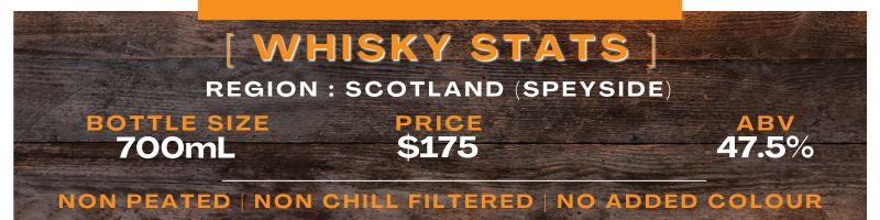 A textbook example of Speyside sherry maturation – if anything a bit more intense thanks to the PX vibe that’s flowing liberally in this one. Big, and rich and creamy is a pretty good ‘Cliffs Notes’ summary. A sweet, fruity, easy drinking for the complete newbie or whisky-nerd alike.